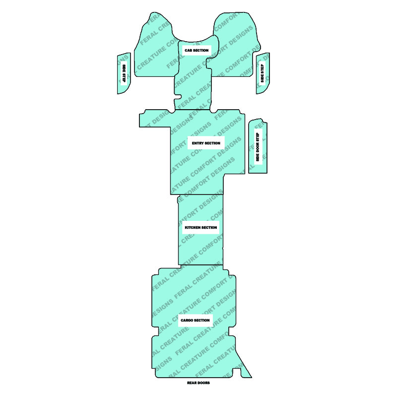 Engineered to withstand rugged terrain and provide lasting protection for your van’s interior. Made with heavy duty Luxury Marine Vinyl for super durability and elegant style. Finished with heavy duty binding for durable yet elegant floor coverings!